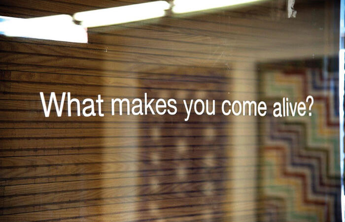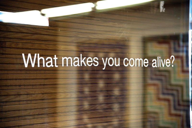 The architecture is elemental, designed by award-winning firm Brook/McIlroy and combines sleek, modern lines with heritage stone. You can see the original brickwork as you head up to the Gift Gallery and frosted glass runs at right angles to oiled pine. The original vault from 1905 stores props and arts supplies now, rather than records or currency, and the ceiling tiles hail back to the turn of the last century. Every corner is fascinating for me as an artist, and the elemental contrasts work to create a kinetic energy that runs through the space.