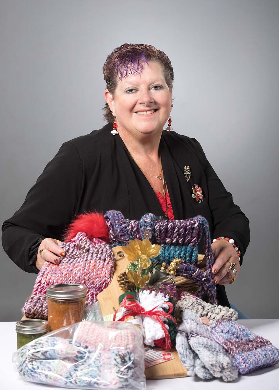 “I crocheted some scarves, purchased some magic gloves, pinned them together, added a granola bar and hung them on parking meters around the city”. With donated yarn, Val crafted at least 100 warming kits between 2018 and 2021. This also inspired her to commit to give back at least 30% of the products she makes with her small crafting business, “All Wrapped Up Stuff,” to the community.